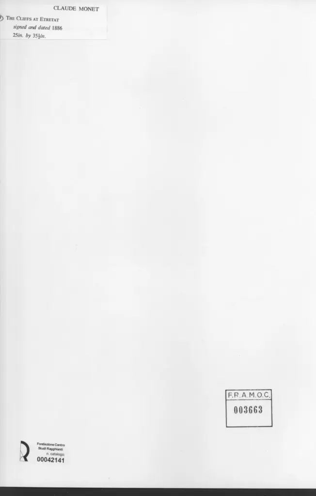 Anonimo , Monet, Claude - sec. XIX - The cliffs at etretat , fronte