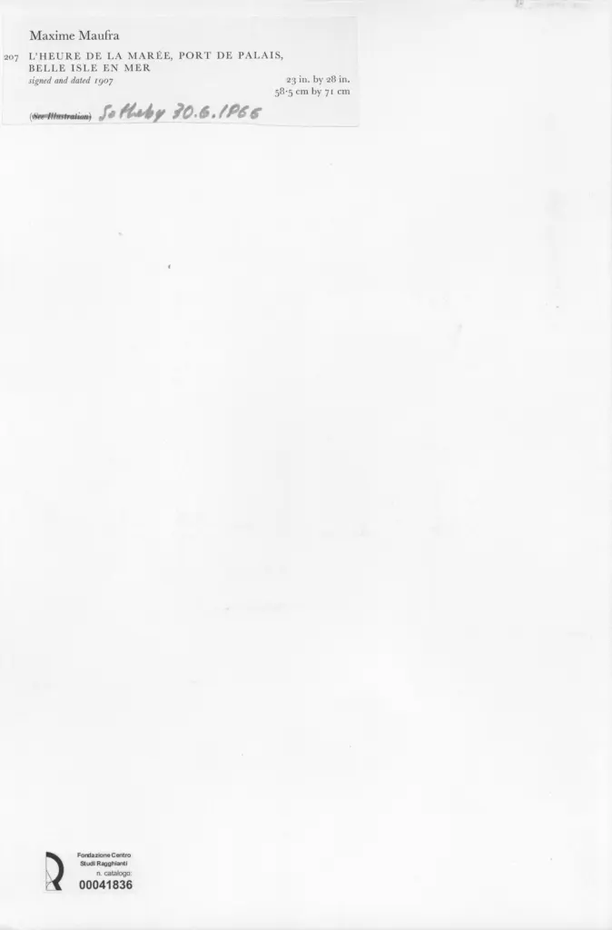 • Anonimo , Maufra, Maxime - sec. XX - L'heure de la maraée, port de Palais, belle isle en mer , fronte