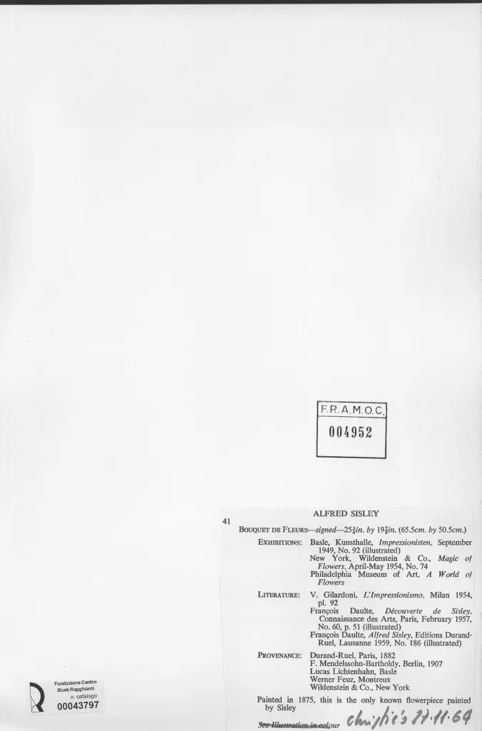 Daulte F., Alfred Sisley, 1959, n. 186