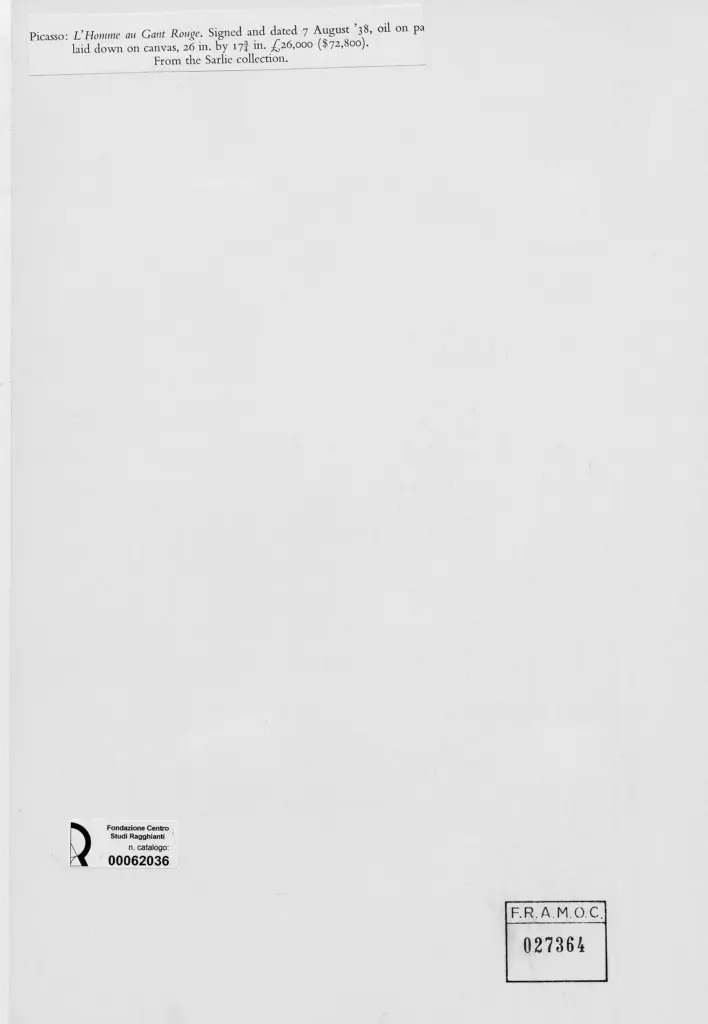 • Anonimo , Picasso, Pablo - sec. XX - L'Homme au grant Rouge , fronte