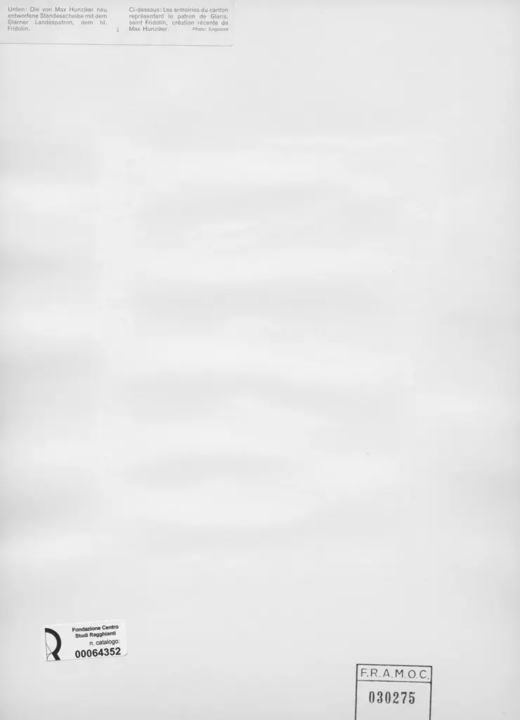 Hunziker, Max, Les armoiries du canton représentant le patron de Glaris, saint Fridolin