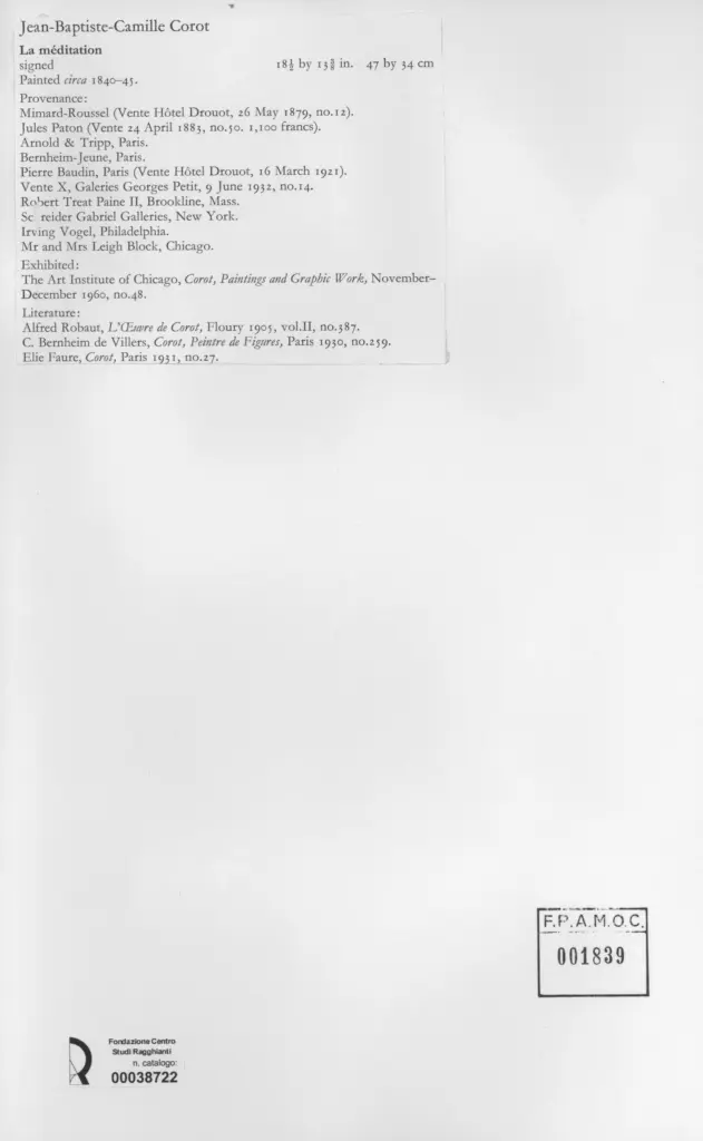 Corot, Jean Baptiste Camille, La méditation