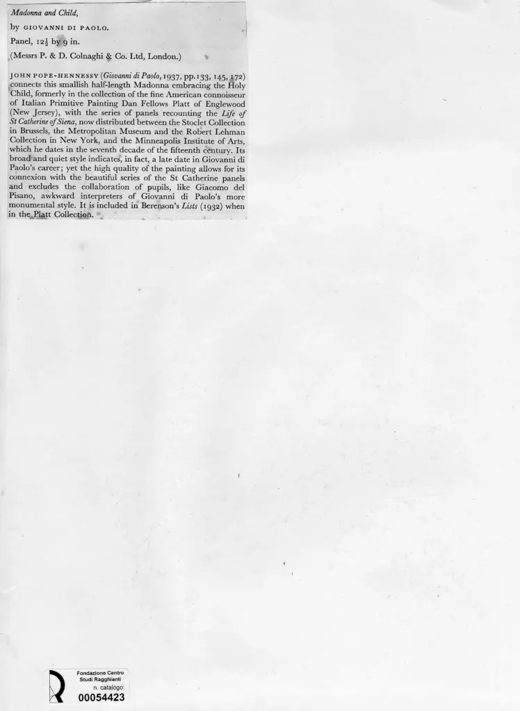 Di Paolo, Giovanni, Madonna con Bambino -