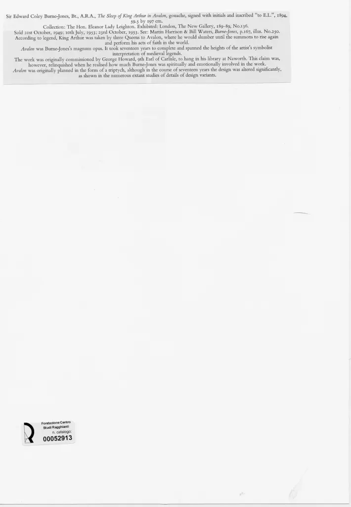 Burne-Jones, Edward C. , Il sonno di Re Artu ad Avalon