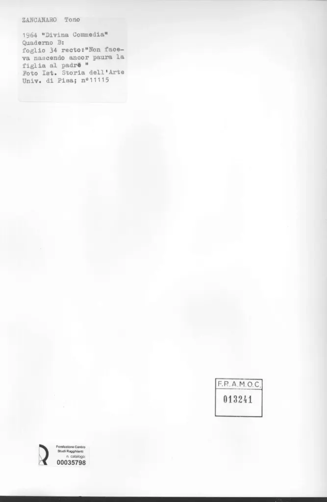 Zancanaro, Antonio, "Divina Commedia": quaderno B, foglio 34 recto: "Non faceva nascendo ancor paura"