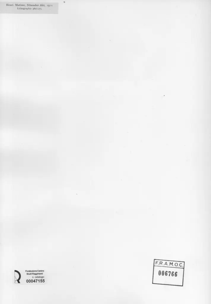 Anonimo , Matisse, Henri - sec. XX - Sitzender Akt , fronte