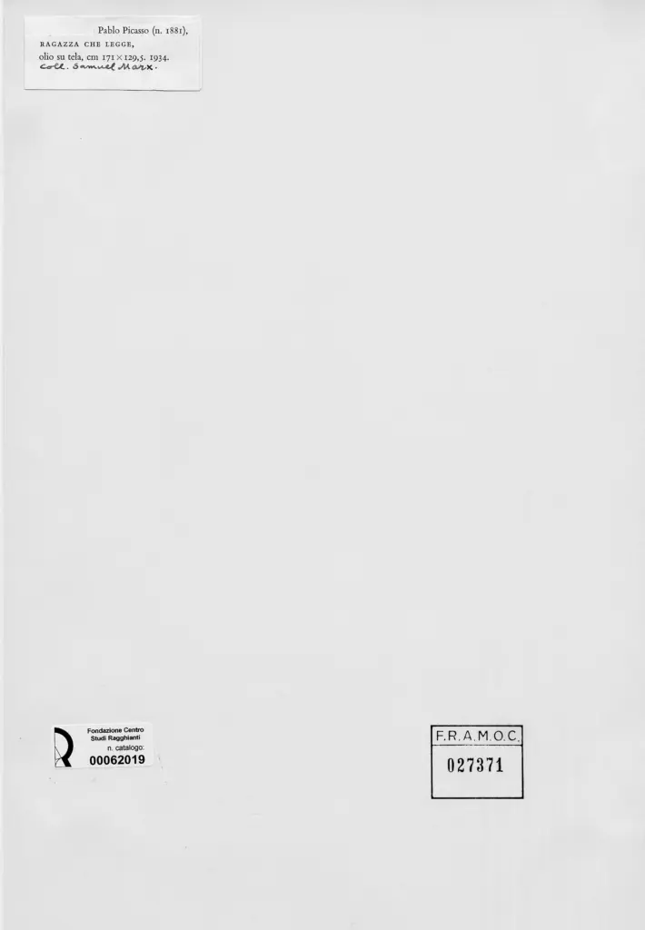 Anonimo , Picasso, Pablo - sec. XX - Ragazza che legge , retro