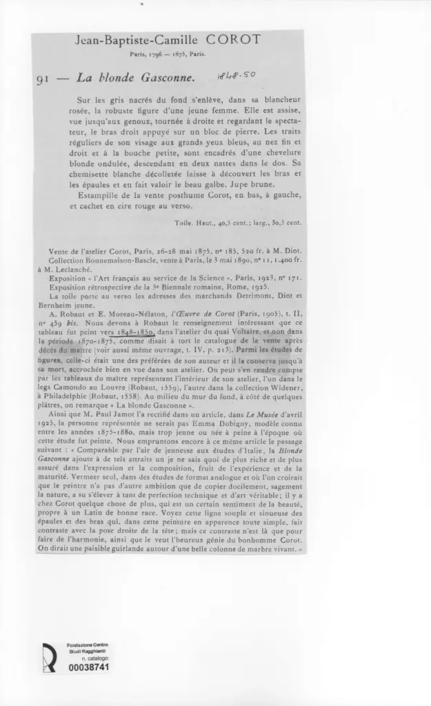 Corot, Jean Baptiste Camille, La blonde Glasconne