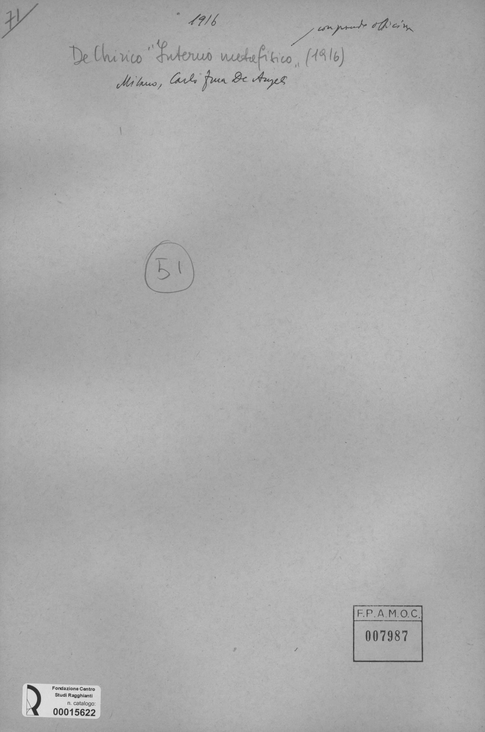 • Anonimo , De Chirico, Giorgio - sec. XX - Interno metafisico , fronte