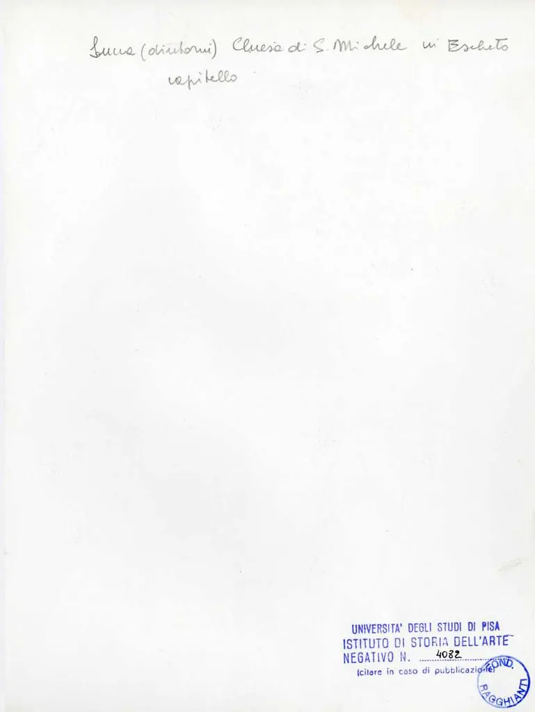 Concioni A., Chiesa di San Michele in Escheto, Comune di Lucca, Lucca 2001, p. 5; Burresi M., Il secolo di Castruccio. Fonti documentarie di storia lucchese, catalogo della mostra, Lucca 1983, p. 163.