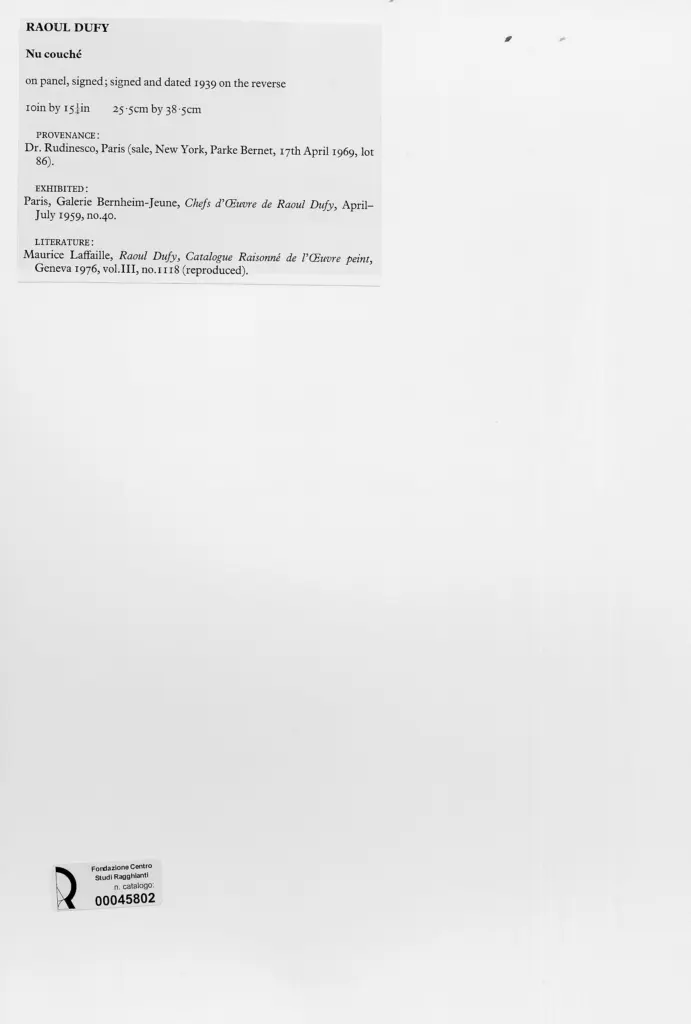 Laffaille M., Raoul Dufy, Catalogue Raisonné de l'Oeuvre peint, 1976, Vol. III, n. 1118
