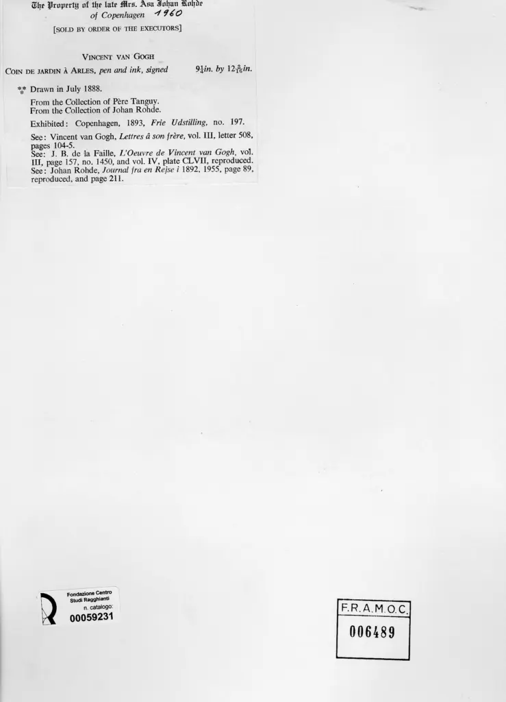 de la Faille J.B., L'oeuvre de Vincent van Gogh, 1928, vol. III, p. 157, n. 1450