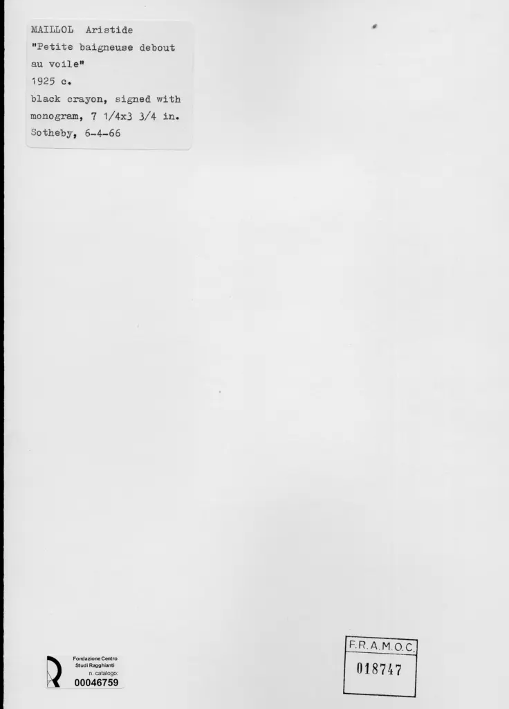 Maillol, Aristide, Piccola bagnante in piedi con velo