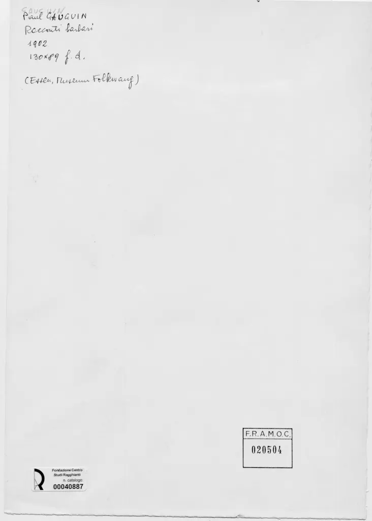 Anonimo , Gauguin, Paul - sec. XX - Racconti barbari , fronte