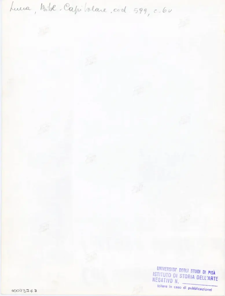 Università di Pisa. Dipartimento di Storia delle Arti , Anonimo italiano - sec. XIII, prima metà - Lucca, Biblioteca Capitolare Feliniana, Ms. 599, f. 6v, particolare , retro