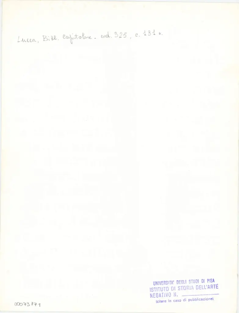 Università di Pisa. Dipartimento di Storia delle Arti , Anonimo italiano - sec. XIV, primo quarto - Lucca, Biblioteca Capitolare Feliniana, Ms. 325, f. 131v, particolare , retro