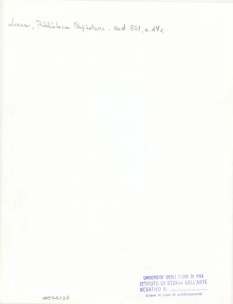 • Università di Pisa. Dipartimento di Storia delle Arti , Anonimo italiano - sec. XII, metà - Lucca, Biblioteca Capitolare Feliniana, Ms. 601, f. 47v, particolare , retro