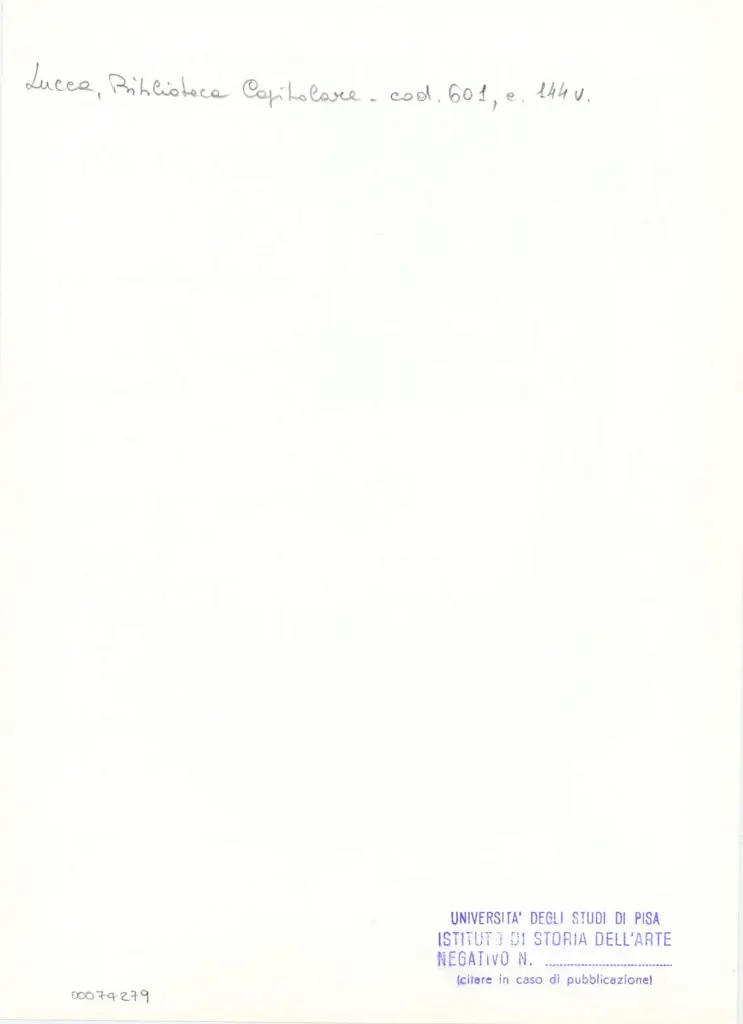 • Università di Pisa. Dipartimento di Storia delle Arti , Anonimo italiano - sec. XII, metà - Lucca, Biblioteca Capitolare Feliniana, Ms. 601, f. 144v, particolare , retro