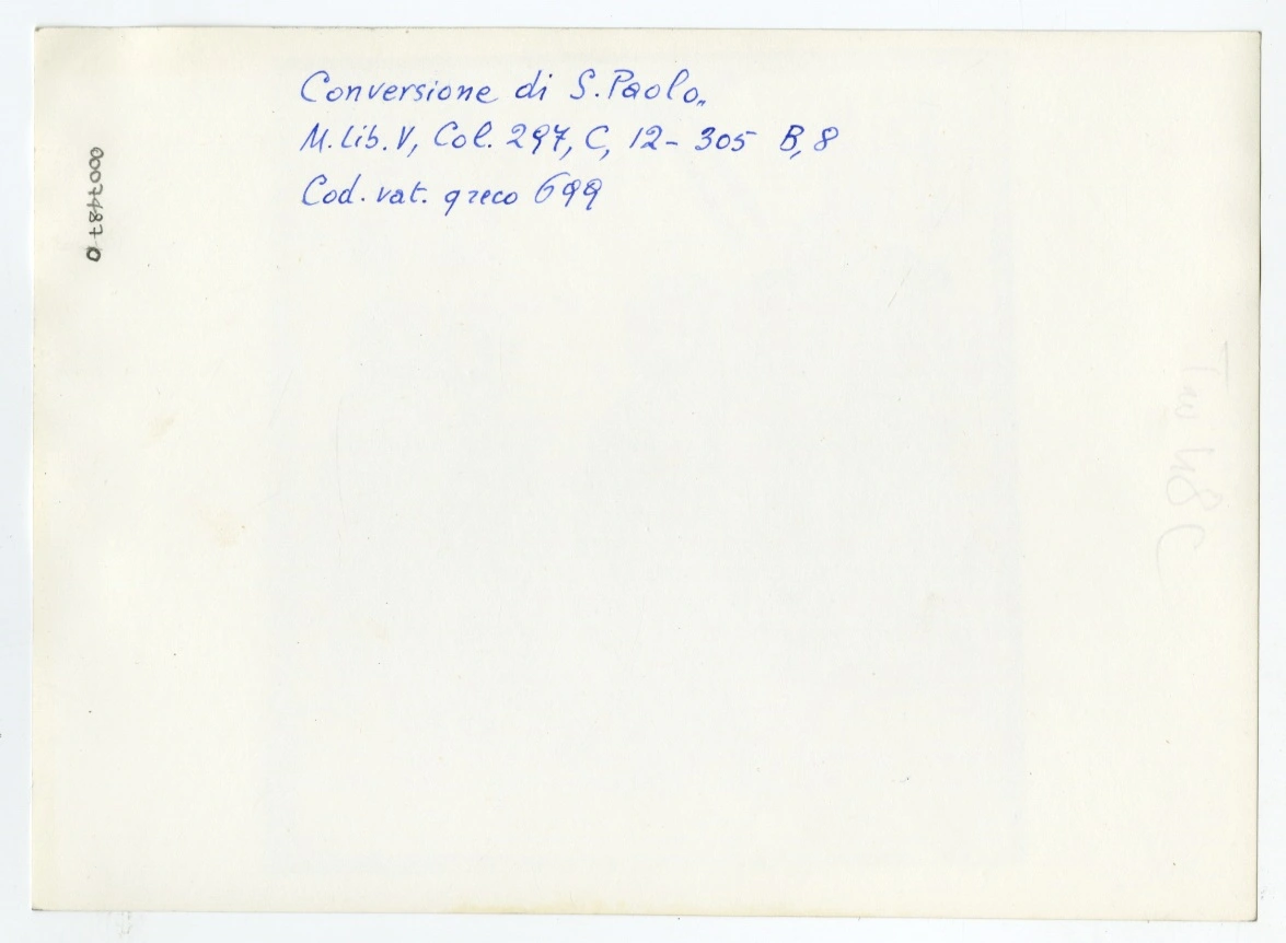 Anonimo , Conversione di S. Paolo, - M. Lib. V, Col. 297, C, 12-305 B, 8 - Cod. vat. greco 699 , retro