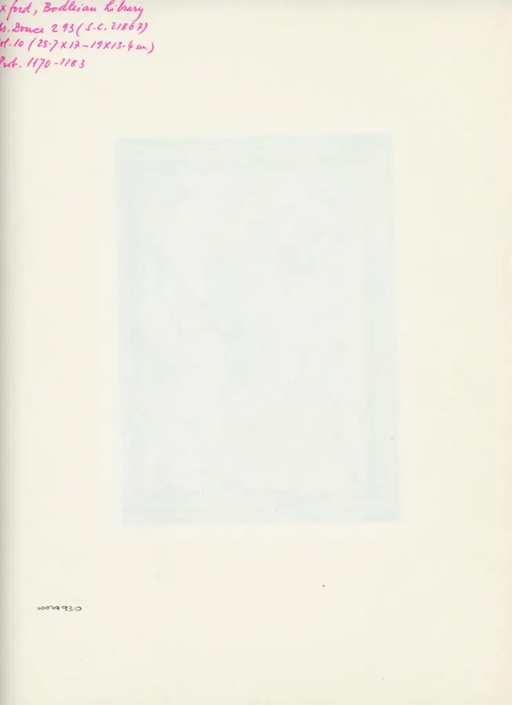 Si tratta della riproduzione fotomeccanica del foglio 10r del manoscritto Douce 293 della Bodleian Library di Oxford. Il manoscritto digitalizzato a colori è visibile all'indirizzo https://digital.bodleian.ox.ac.uk/objects/fe7c6cf9-6a23-4ec4-bb6c-692e36852f6e/ (data ultima consultazione: 05/03/2024).