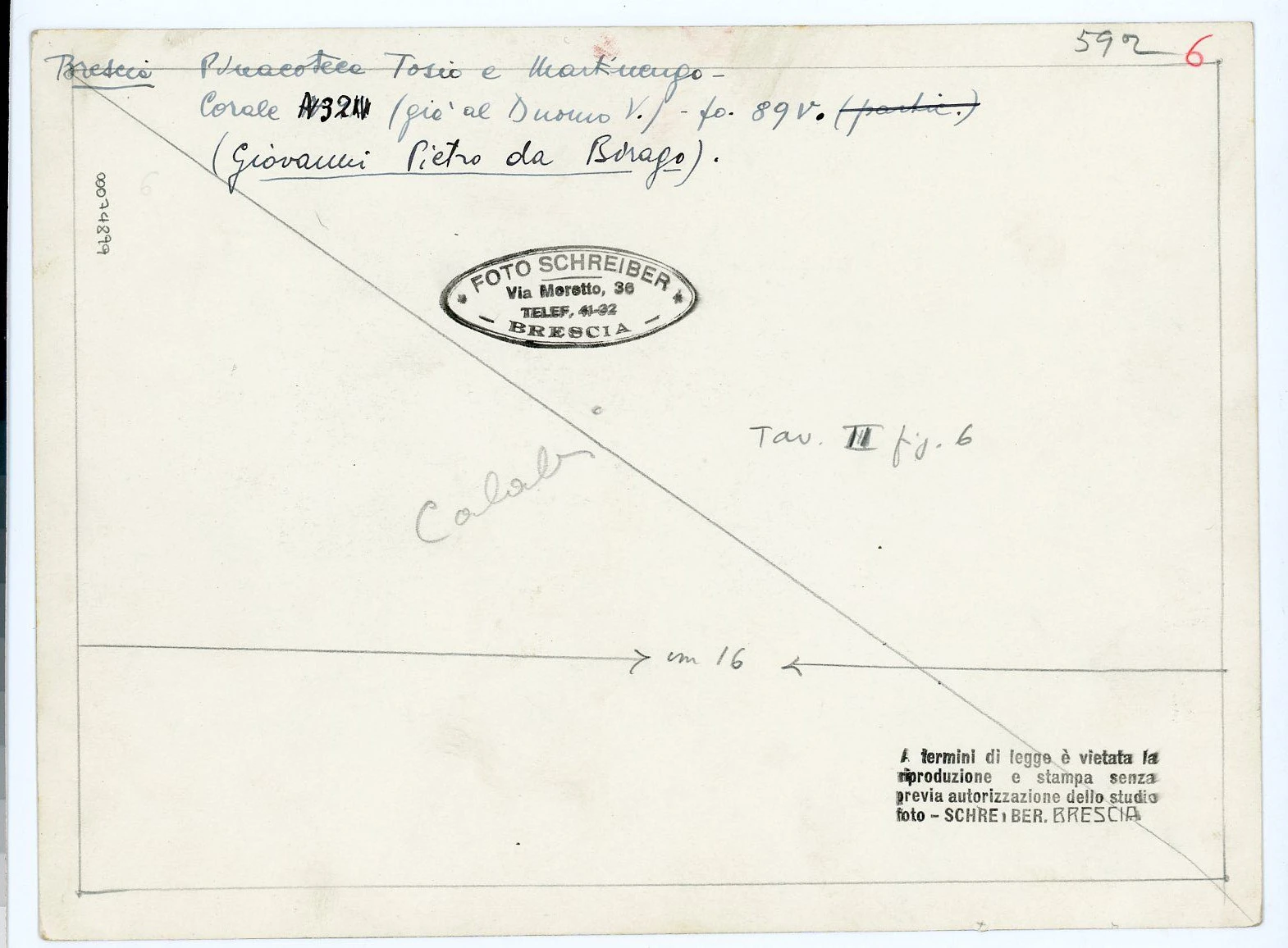 Si tratta della fotografia del foglio 89v del manoscritto (probabilmente) oggi Brescia, Musei Civici d'Arte e Storia, Manoscritti, D.14, cfr. la scheda all'indirizzo https://manus.iccu.sbn.it/cnmd/0000104694 (data ultima consultazione: 12/03/2024).