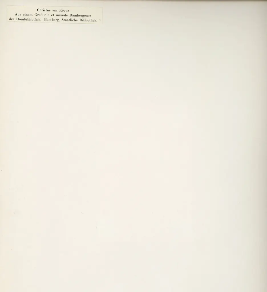 Si tratta della riproduzione fotomeccanica di un foglio del Graduale e messale proveniente dalla Biblioteca della Cattedrale pubblicata in Lutze Eberhard, Bamberger Buchmalerei im 12. Jahrhundert, in «Zeitschrift für bildende kunst», 64 (1930/1931), pp. 161-167: 163.