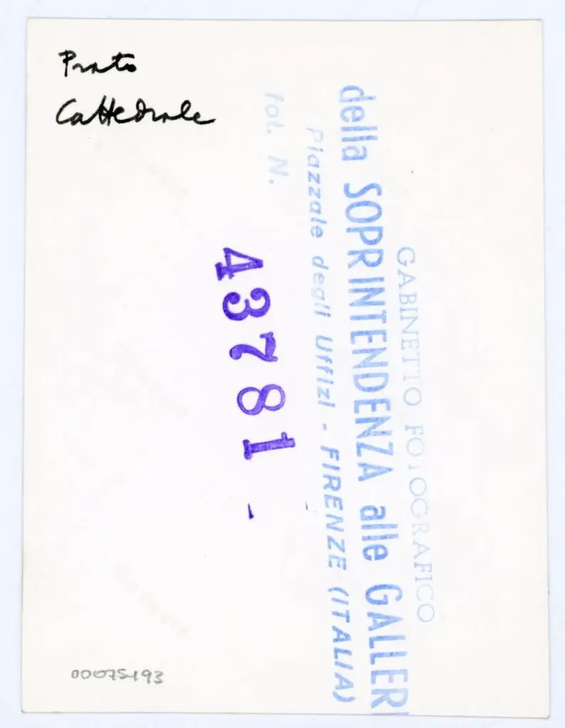Si tratta della fotografia del foglio 68r del manoscritto 5 dell'Archivio del Capitolo della Cattedrale di Prato, oggi esposto nel Museo dell'Opera del Duomo con segnatura D.