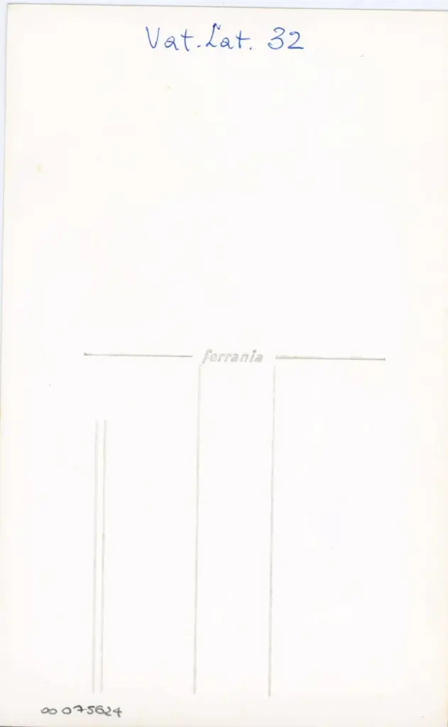 Si tratta della fotografia del foglio 66r del manoscritto Vat. lat. 39 della Biblioteca Apostolica Vaticana, erroneamente indicato come Vat. lat. 32 nell'annotazione manoscritta sul verso. Il manoscritto interamente digitalizzato a colori è visibile all'indirizzo https://digi.vatlib.it/view/MSS_Vat.lat.39 (data ultima consultazione: 16/06/2025).