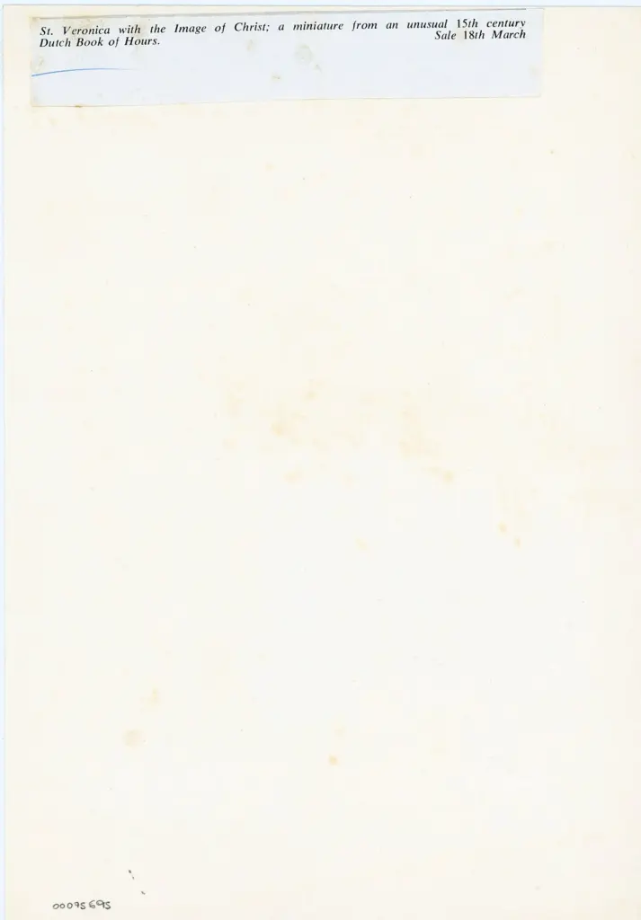 Anonimo olandese sec. XV, Santa Veronica sostiene il velo, Iniziale S, Iniziale abitata, Cornice con motivi decorativi fitomorfi