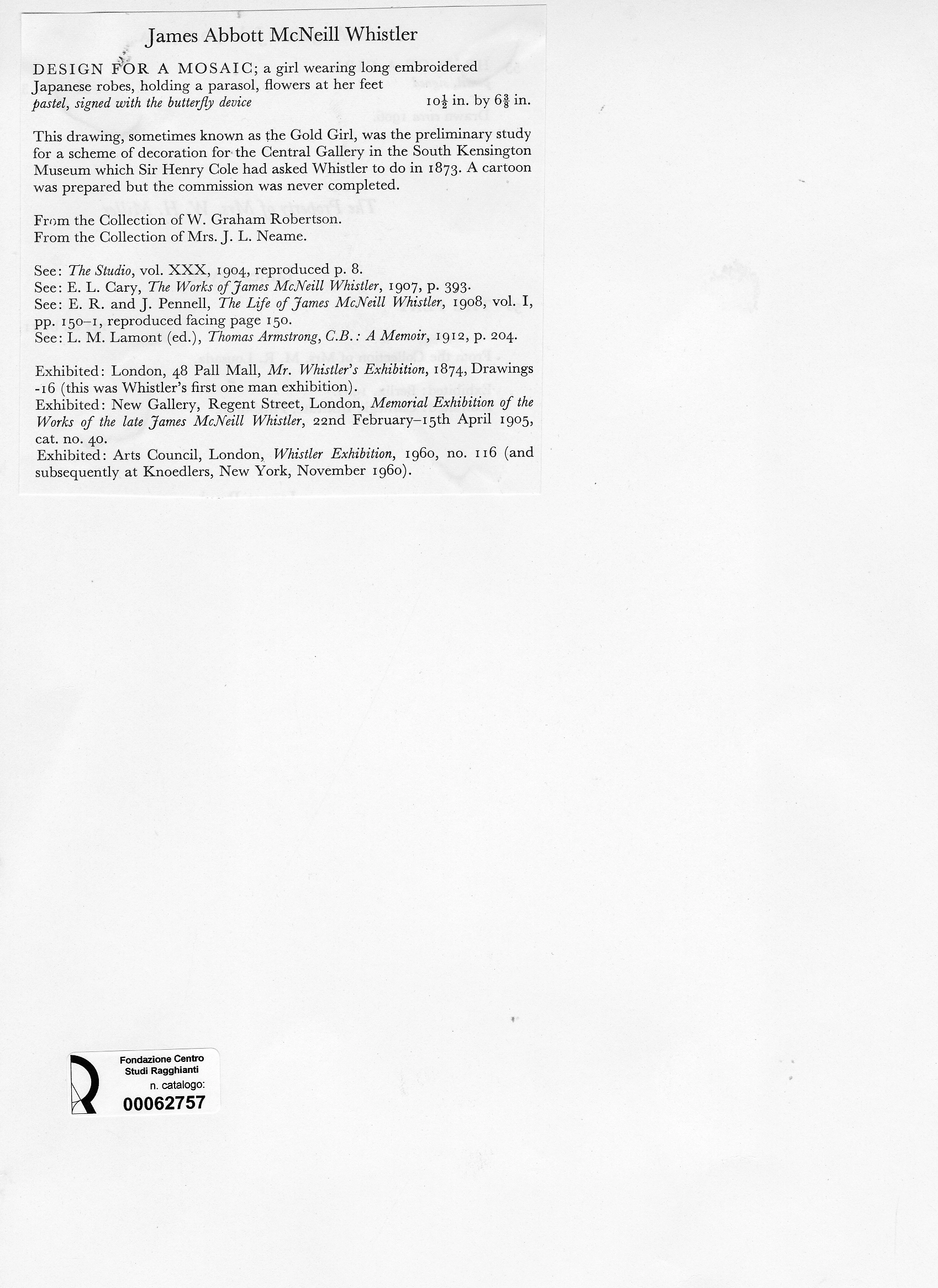 NcNeil Whistler, James Abbott, Disegno per un mosaico