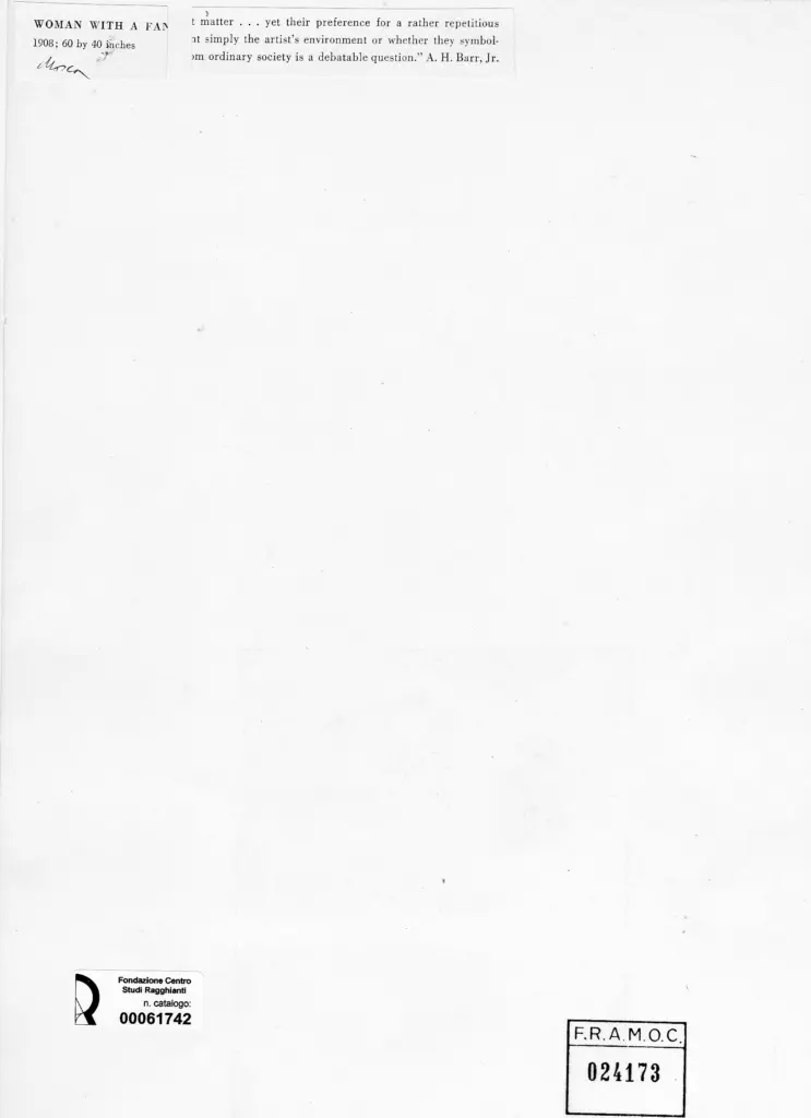 Anonimo , Picasso, Pablo - sec. XX - Woman with a fan , fronte