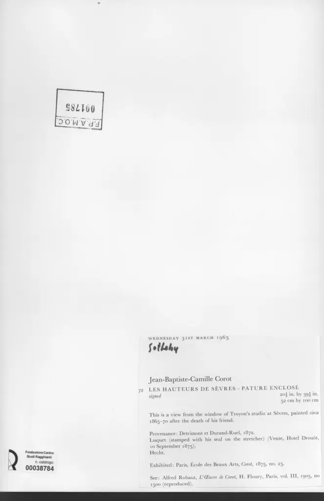 Robaut A., L'oeuvre de Corot, 1905, vo. III, n. 1500
