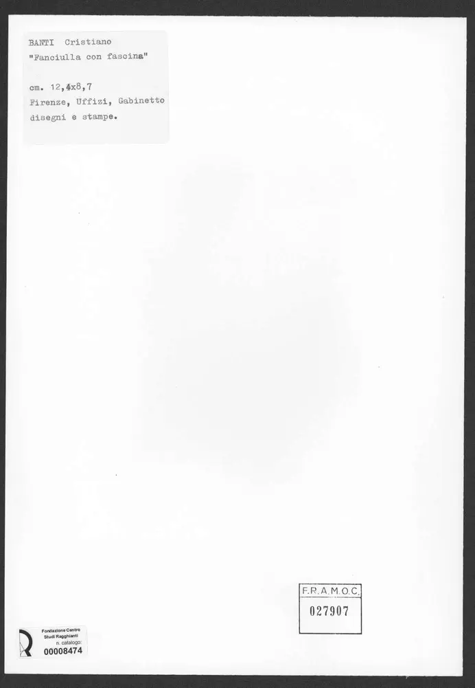 BANTI Cristiano "Fanciulla con faascina" cm. 12,4 x 8,7 Firenze, Uffizi, Gabinetto disegni e stampe. F.R.A.M.O.C. 027907