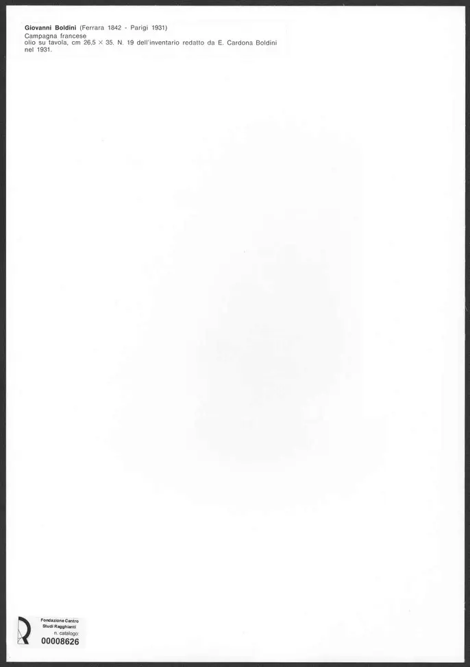 Giovanni Boldini (Ferrara 1842-Parigi 1931) campagna francese olio su tavola, cm 26,5x35. N.19 dell'inventario redatto da E. Cardona Boldini nel 1931.
