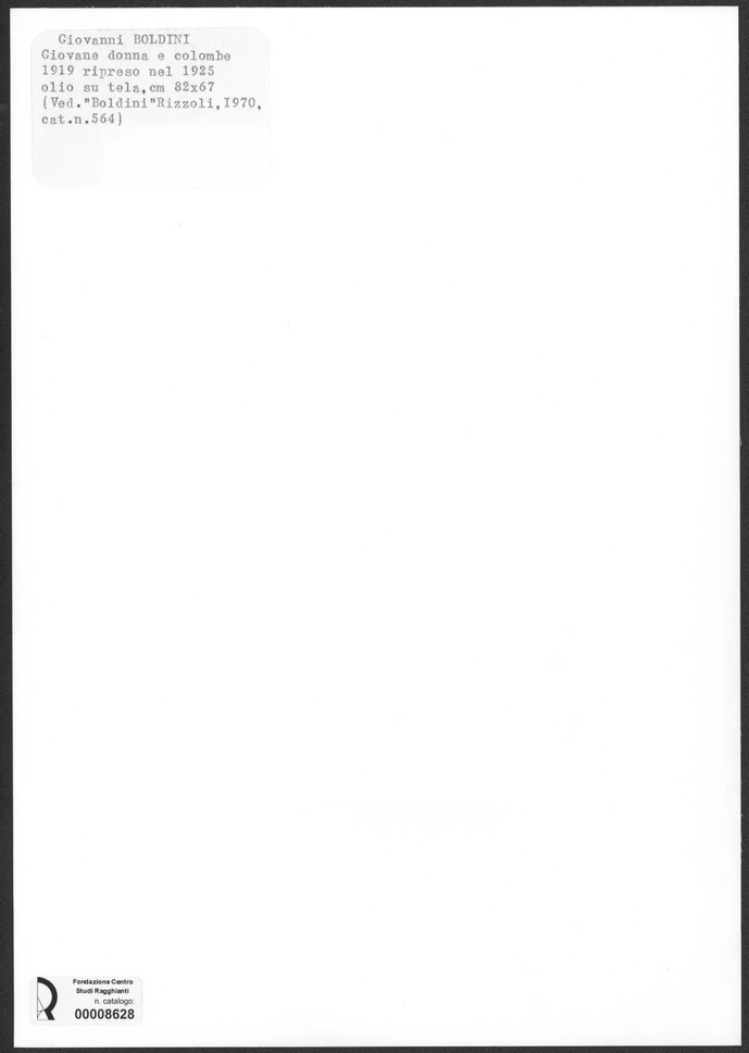 Giovanni BOLDINI Giovane donna e colombe 1919 ripreso nel 1925 olio su tela cm. 82x67 (Ved. "Boldini" Rizzoli, 1970, cat. n.564)
