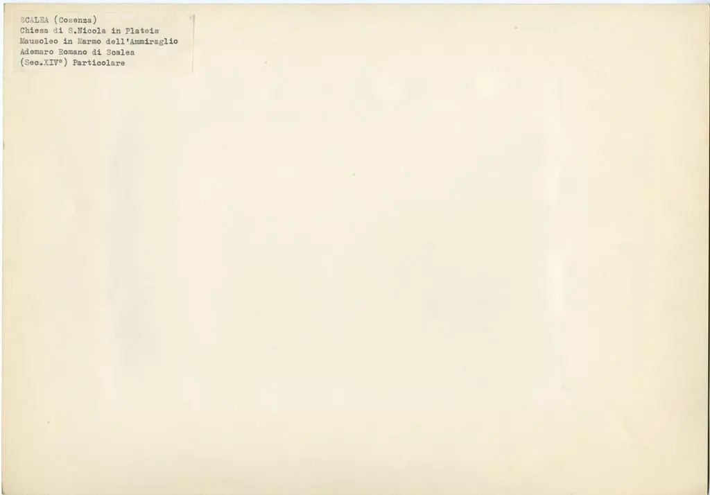 Anonimo , Scalea (Cosenza) Chiesa di S. Nicola in Plateis - Mausoleo in Marmo dell'Ammiraglio Ademaro Romano di Scalea (Sec. XIV°) Particolare