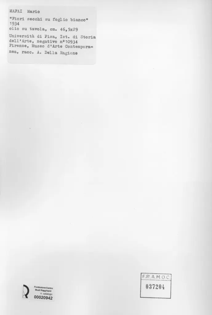 Università di Pisa. Dipartimento di Storia delle Arti , Mafai, Mario - sec. XX - Fiori secchi su foglio bianco