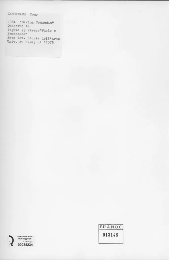 Università di Pisa. Dipartimento di Storia delle Arti , Zancanaro, Antonio - sec. XX - Paolo e Francesca - foglio 79 verso , retro