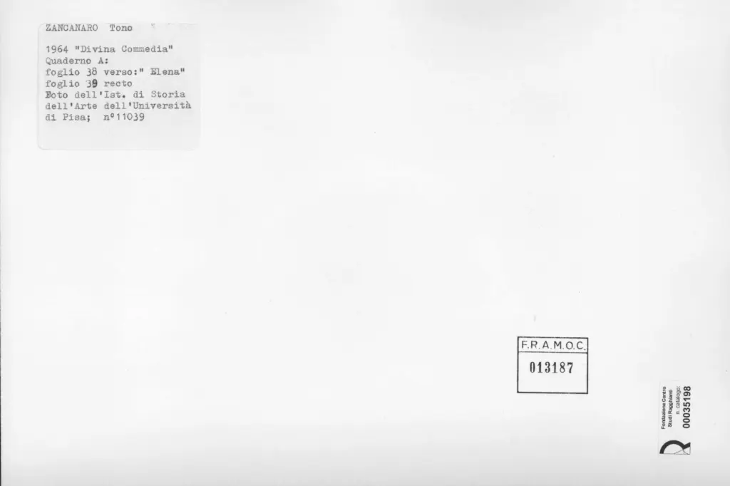 Università di Pisa. Dipartimento di Storia delle Arti , Zancanaro, Antonio - sec. XX - Elena - foglio 38 verso e foglio 39 recto