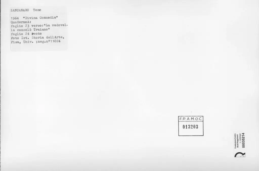 Università di Pisa. Dipartimento di Storia delle Arti , Zancanaro, Antonio - sec. XX - La vedovella consolò Traiano - foglio 23 verso e foglio 24 recto