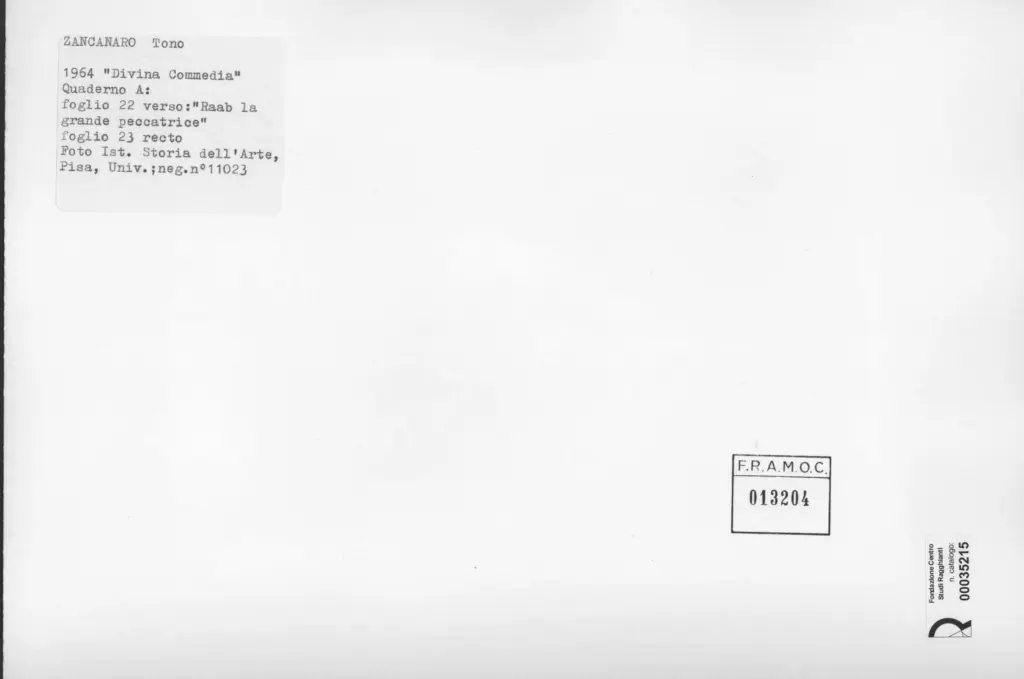 Università di Pisa. Dipartimento di Storia delle Arti , Zancanaro, Antonio - sec. XX - Raab la grande peccatrice - foglio 22 verso e foglio 23 recto