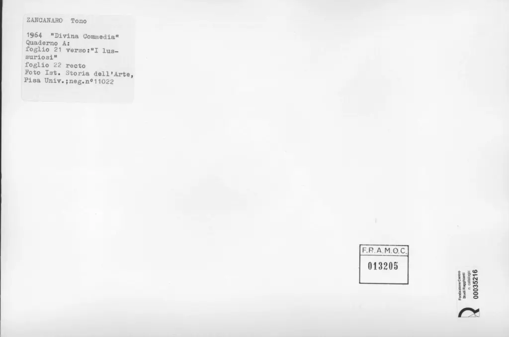 Università di Pisa. Dipartimento di Storia delle Arti , Zancanaro, Antonio - sec. XX - I lussuriosi - foglio 21 verso e foglio 22 recto
