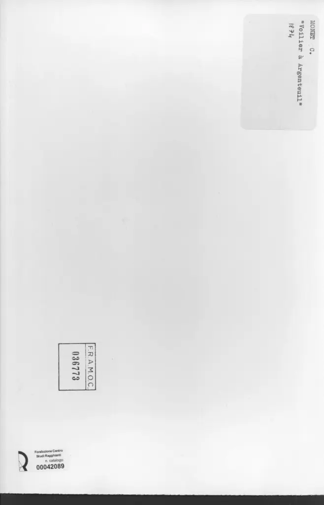Anonimo , Monet, Claude - sec. XIX - Voilier à Argentuil , fronte