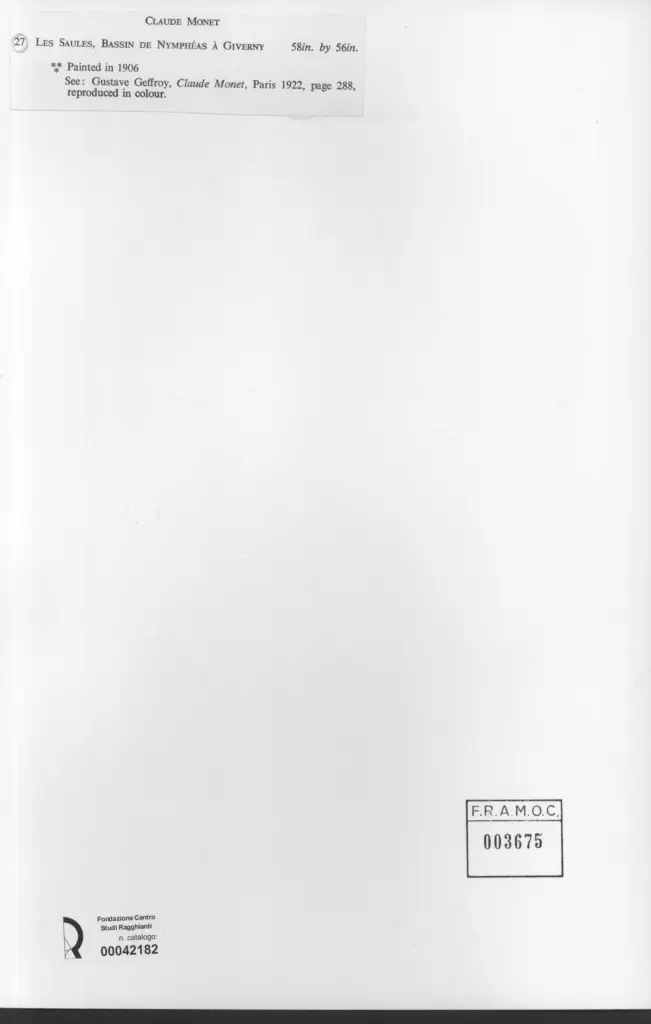 Anonimo , Monet, Claude - sec. XX - Les Saules, bassin de Nympheas à Giverny
