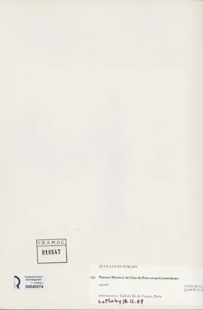 • Anonimo , Forain, Jean-Louis - sec. XIX - Nature morte à la côte de porc et au cornichons , fronte