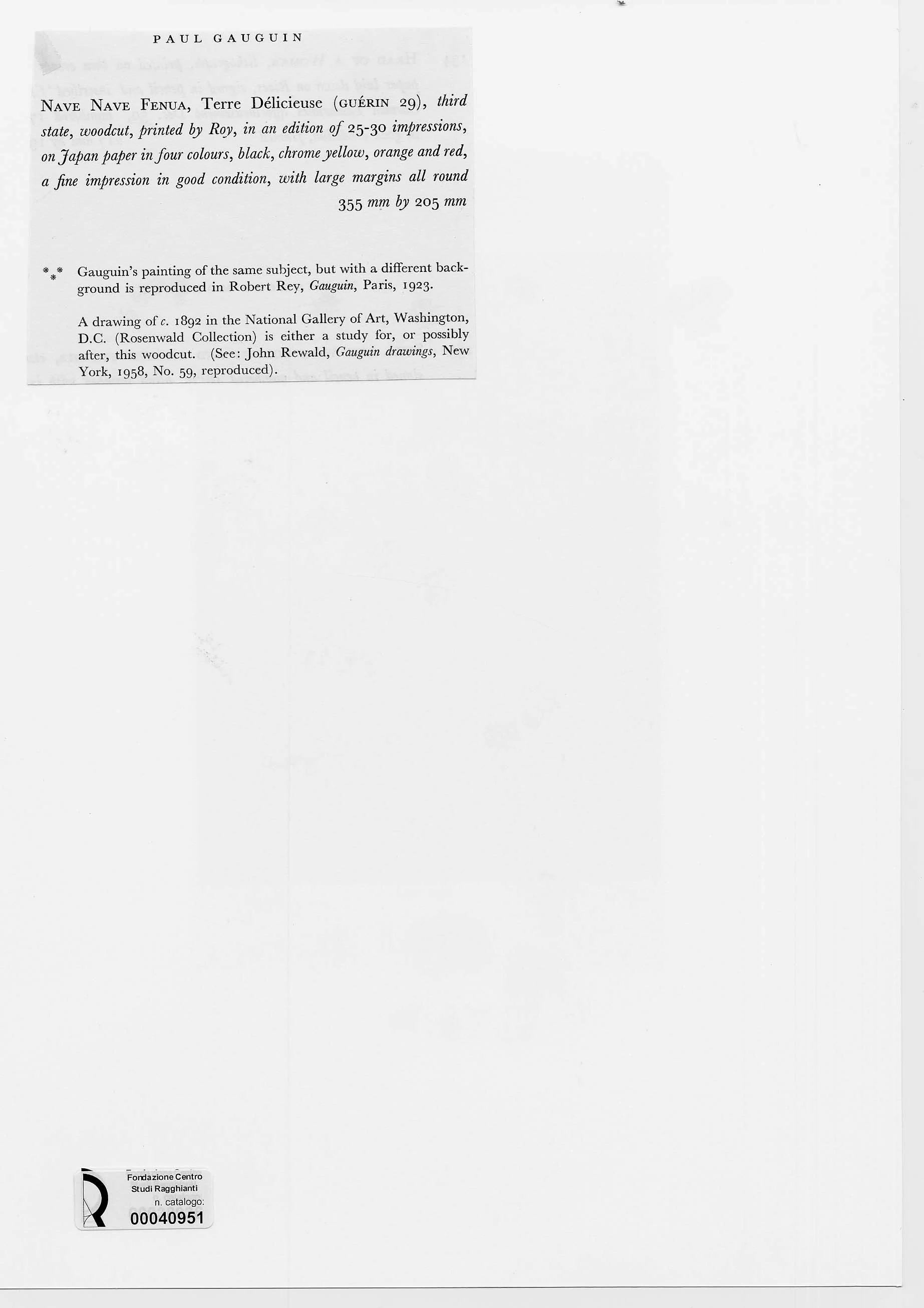 Anonimo , Gauguin, Paul - sec. XIX - Nave Nave Fenua, Terre Delicieuse (Guerin 29)