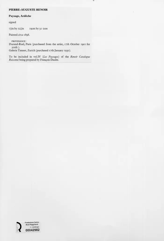 Anonimo , Renoir, Pierre Auguste - sec. XIX - Paesaggio a Ardèche