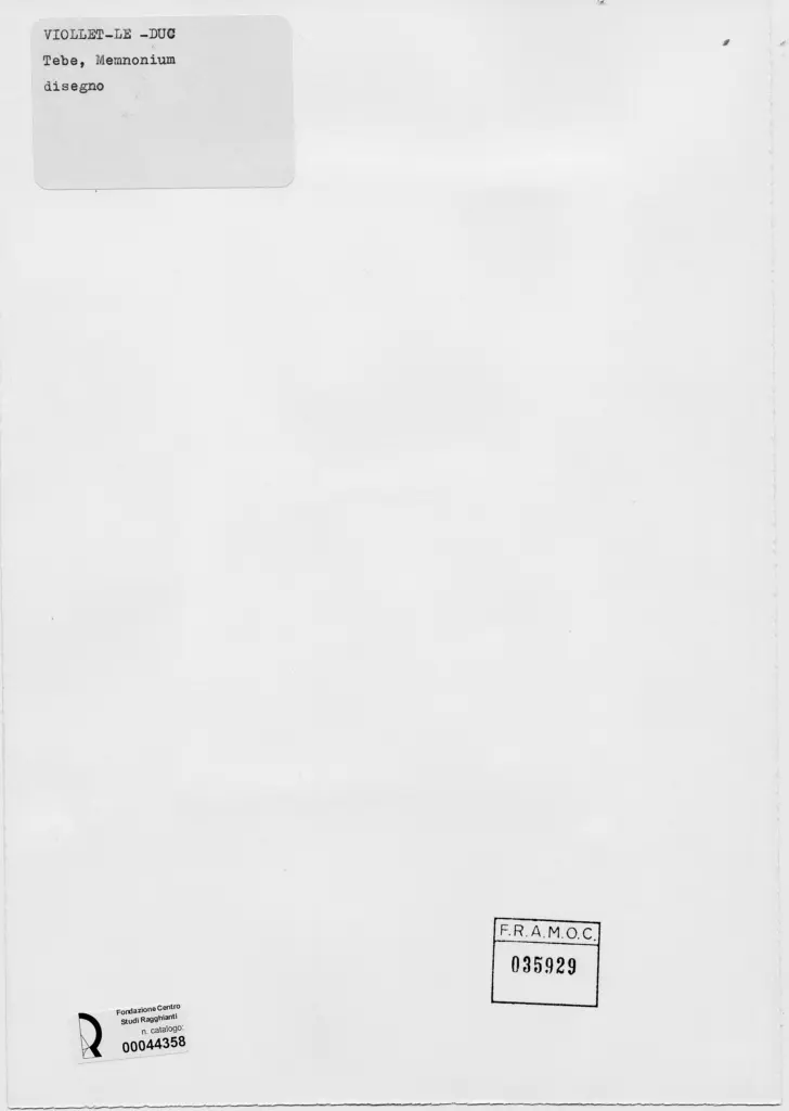 Anonimo , Viollet Le Duc, Victor - sec. XIX - Veduta del Memnonium a Tebe , fronte