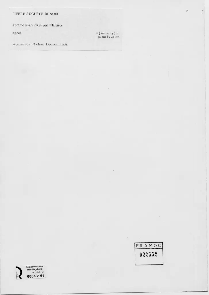 Anonimo , Renoir, Pierre Auguste - sec. XIX - Donna che legge in un prato