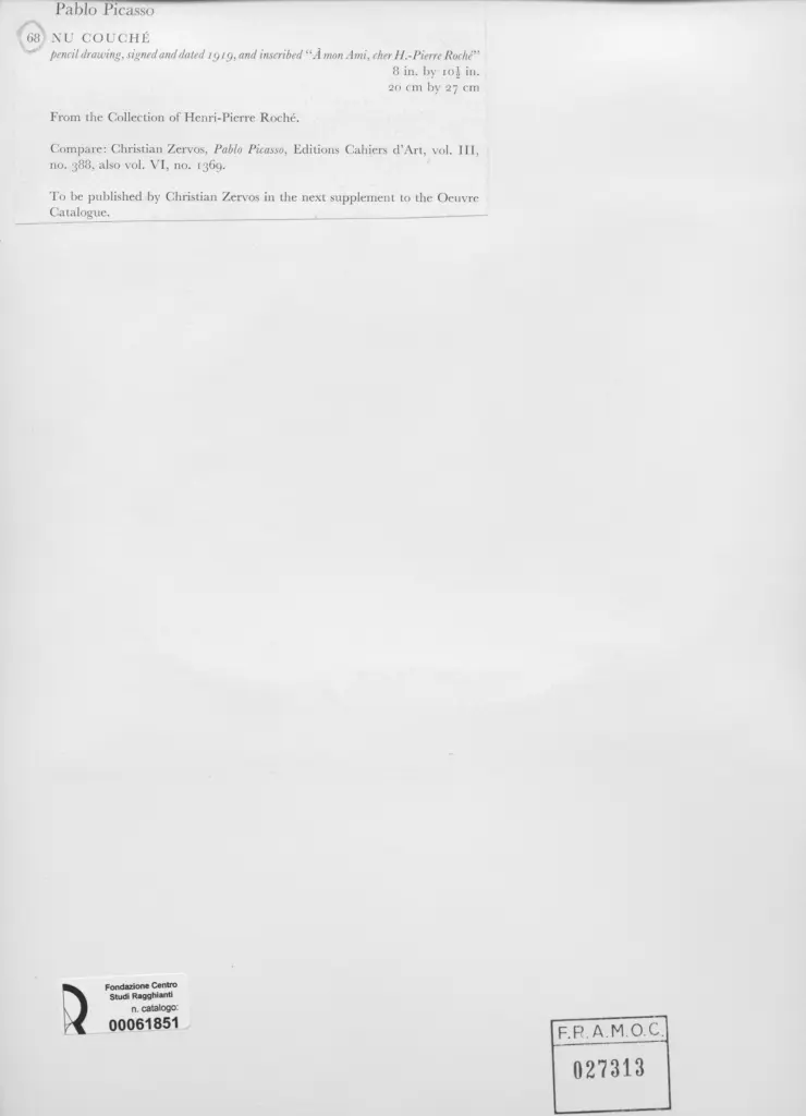 • Anonimo , Picasso, Pablo - sec. XX - Nu couché , fronte